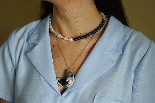 Our Split Heart Croissant Friendship Necklaces, adorned with a mix of rose quartz and white jade crushed stones and beads, lustrous pearls and gold paper clip chains, are the perfect companions if you're yearning for infinite peace and protection from negative energies (especially stress and anxiety). By soothing inner emotional instability and attracting good fortune and success, these charming necklaces will allow you to foster a deeper connection with your bestie while inviting in shared prosperity. Perfect for bffs, sisters, moms & daughters, grandmas & granddaughters, or even pastry shop co-owners!🩷✨